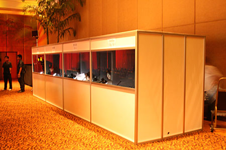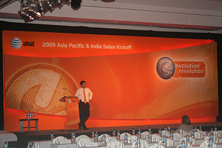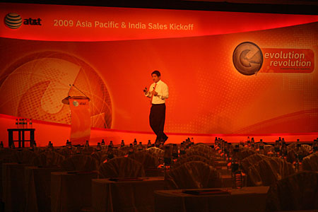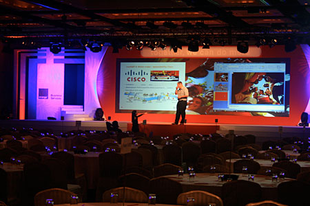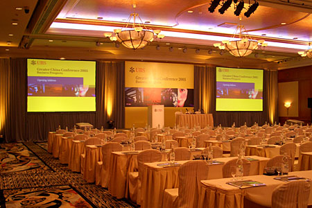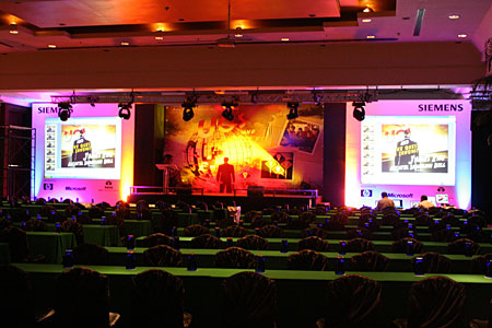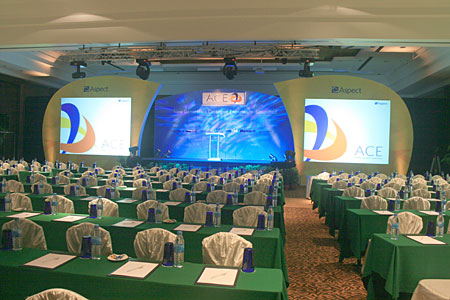 International Confierence in Bangkok 31 January - 2 February 2005 Spot lights on background to emphasize apperance of the speaker in front. Works International beautifully set up this conference in a day. |